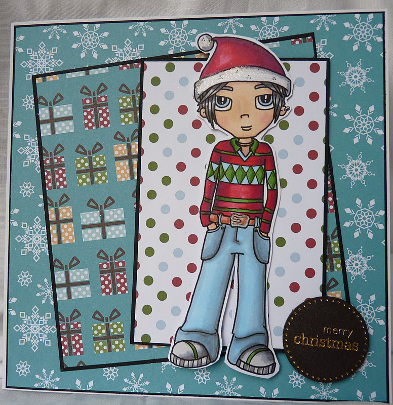 the papers are MME lost & found Christmas , the image is from funkykits, its a simply sassy, which was a limited edition when the last set was launched....called "Seasons greetings"..... she is coloured with my Promarkers...