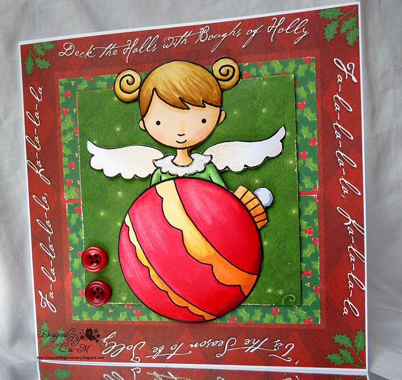 She is coloured with my markers, cut out and 3d-d onto my card... the papers did the job quite well really .. just a couple of buttons to finish..