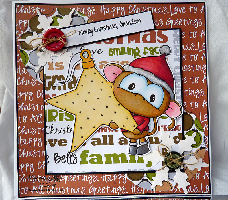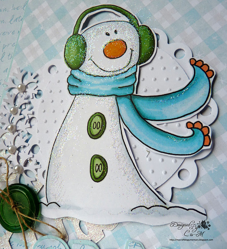 The papers are First Editon, Festive Treats , I think... my image, called "Winter Friends" is coloured with my markers... the greeting is from Lili of the valley