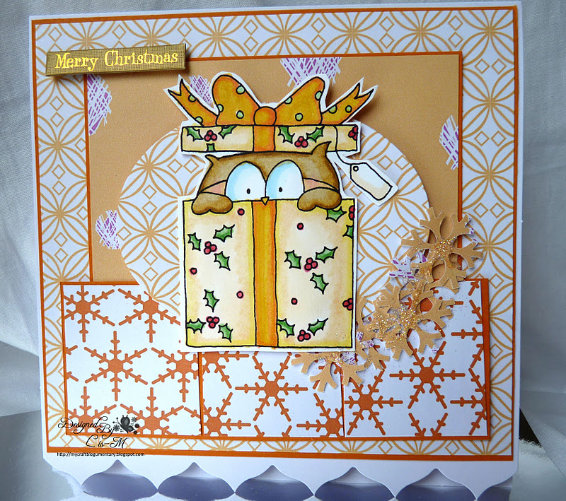Now.. I don't know if you have seen the Complete Cardmaking with your pc mag on the shelves... but its one not to miss.. the freebies n that are awesome... for a start 70 - yes 70 Pollycraft digi'S.... !!!and nitwits, and funkyhand. Which is where my papers are from... "Twelve Crafters" Then the image is a freebie on the cd too !!!! Coloured with my markers , and popped on the card . A few snowflakes and buttons to finish...