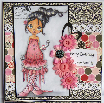 the image is called Priscilla pie ... she is coloured with spectrums once again... the papers are Echo Park "Yours Truly" . flowers and buttons from stash.. Heart die cut from Sissix.... the sentiment is computer generated.. as you can see its for my sister,... Its her birthday today.. so I hope she likes this....