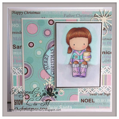 the papers are really old .. from Craftwork cards..... and the image is from funkykits..A Sugarplum stamp called "Cocoa Emma ", coloured with my Promarkers this time... the sentiment is half a Cats life press Christmas one.. and I have doctored one of my Mariannes die cut snowy borders... sorry if u are fed up of seeing that MS punch , but i love it ! Thanks Mum ! x